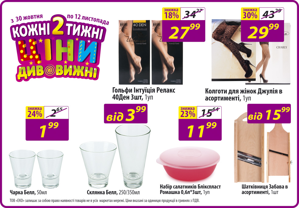 Экомаркет акции. Экомаркет в своем арсенале использует огромный перечень рычагов по привлечению покупателей и активно борется за каждого, позиционируя себя, как «экономный маркет». Здесь есть и региональные акции, и общие для всех сетей – как для продуктовых, так и для продовольственных товаров. Активно работает реклама на ТВ.